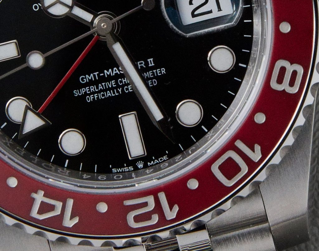 The presence of the latest generation movement inside the GMT-Master II is indicated by a subtle symbol introduced with the 2018 releases. A tiny coronet at six o’clock, sitting in-between “Swiss” and “Made” distinguishes models with the latest movements from similar models with the previous generation of movements. So while the new GMT-Master II has the coronet at six, the other steel cheap replica Rolex GMT-Master watches do not.